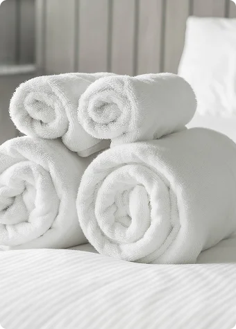 Всегда в наличии на складе стандартные гостиничные махровые полотенца из 100% хлопка белого цвета, а также халаты махровые и вафельные.