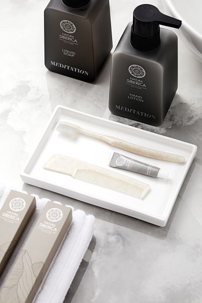 Зубной набор в картонной коробочке с товарным знаком и дизайном Natura Siberica.